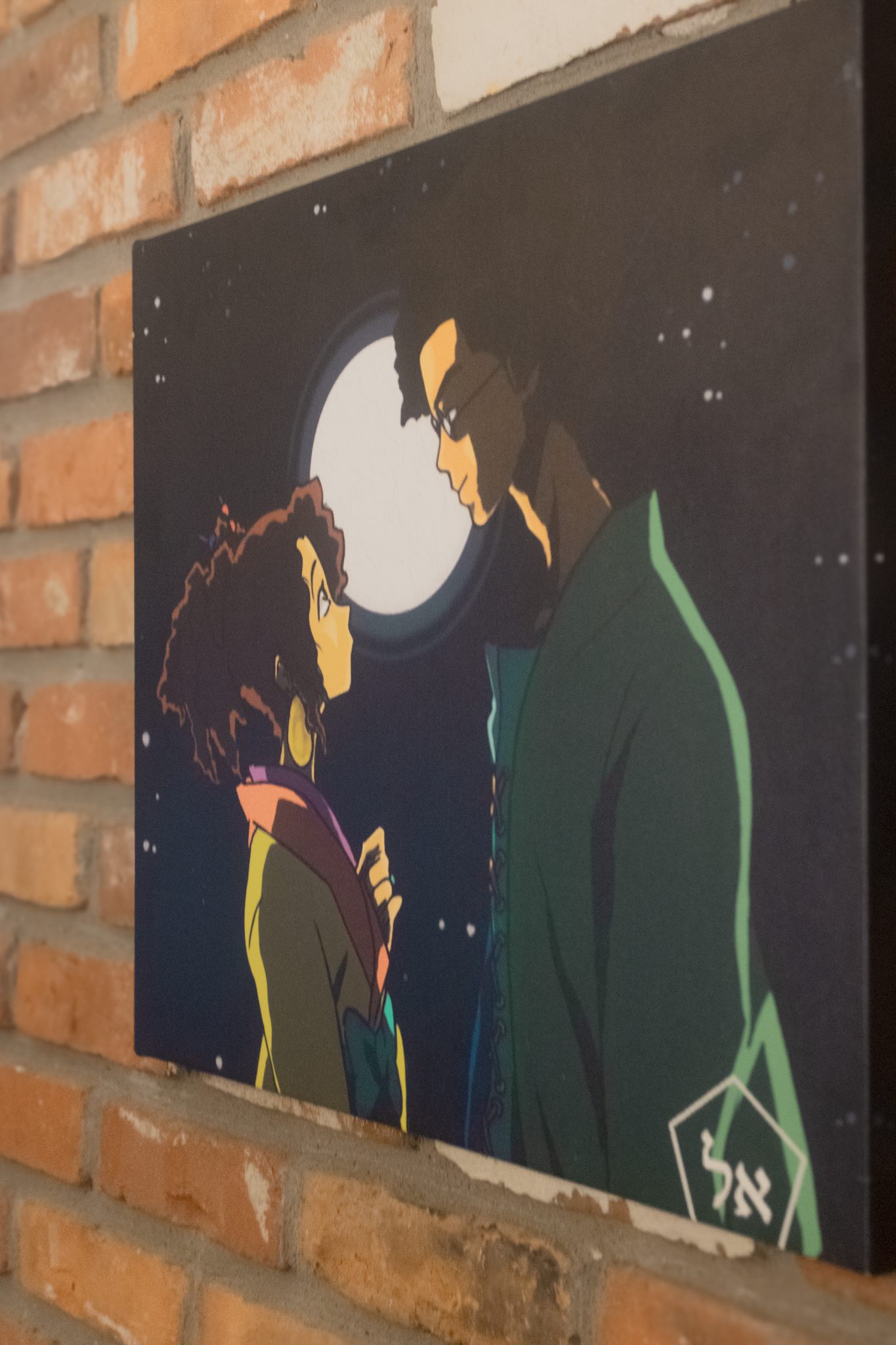 A Venus Moon captures the quiet magic of love beneath the night sky. Two figures stand in tender connection under the glow of the full moon, embodying intimacy, romance, and cosmic alignment. The deep blues and glowing lunar backdrop bring a sense of calm devotion into any space. Perfect for bedrooms, living rooms, or as a heartfelt gift to a partner.